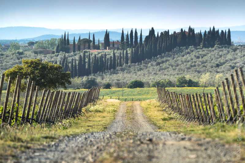 Lo scatto è preso dalla collina di Poggio al Vento, l'ultimo declivio prima della pianura Grossetana. Oltre le vigne, ci sono sentieri che portano su, fino al crinale dove c'è l'antico acquedotto che ci rifornisce, e i resti di un bosco come quelli che coprivano anticamente tutte queste colline.